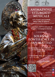 L’Ufficio Liturgico Diocesano unitamente al Coro dell’Arcidiocesi invitano tutte le corali delle foranie di Salerno a partecipare all’animazione liturgico-musicale del Solenne Pontificale di San Matteo al mattino di domenica 21 settembre nella Cattedrale di Salerno.