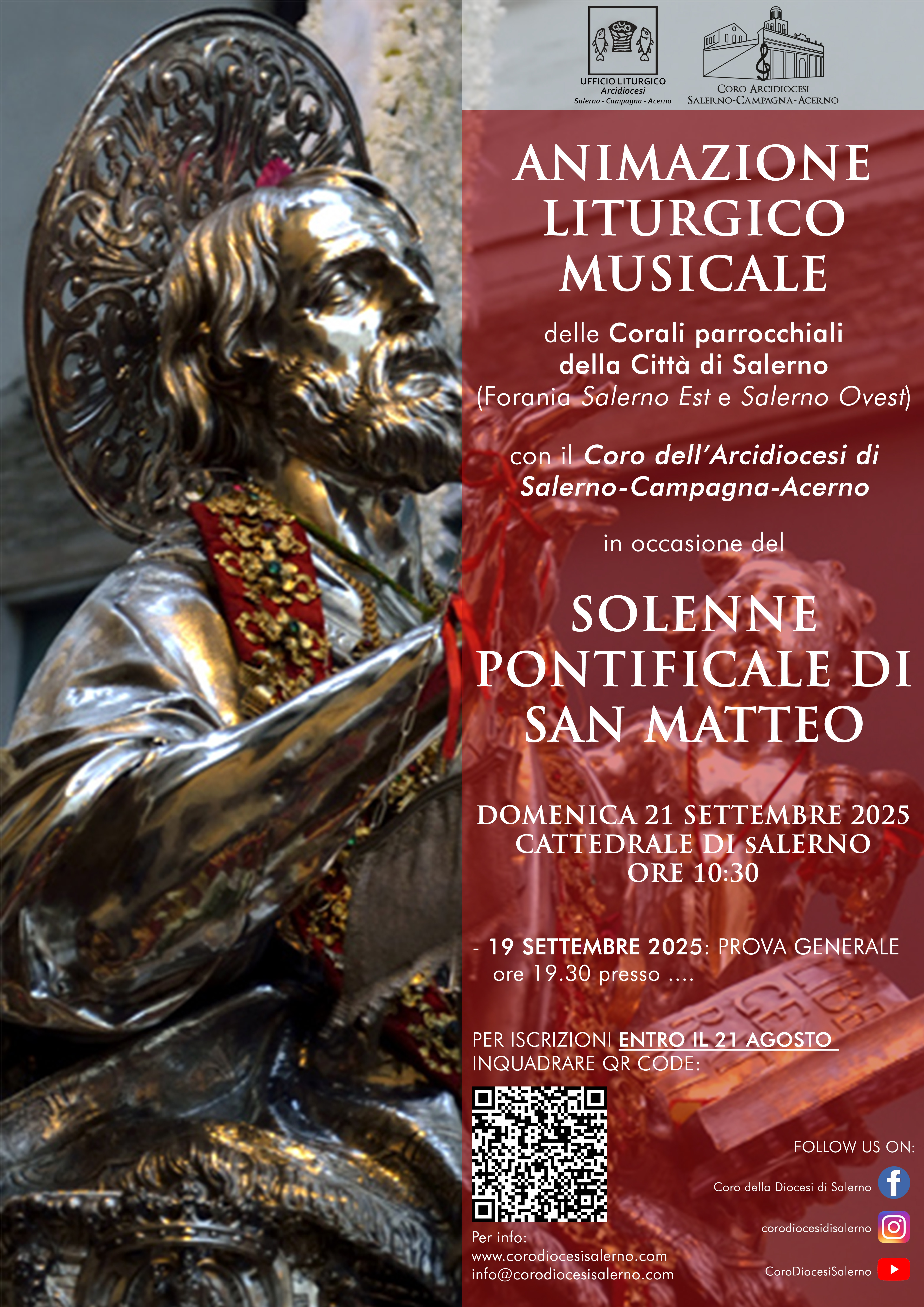 È possibile iscriversi entro e non oltre il 21 agosto p.v. attraverso il seguente link: https://www.corodiocesisalerno.com/news/la-voce-di-una-citta-cantare-insieme-per-san-matteo.html.
