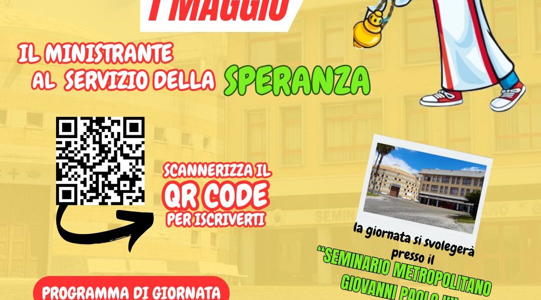 Giovedì 1 maggio, presso il Seminario Metropolitano Giovanni Paolo II, come da tradizione si terrà la Giornata del Ministrante, una giornata di gioia con giochi e preghiera con tutti i ministranti della nostra Arcidiocesi. Per partecipare basta iscriversi tramite il ...