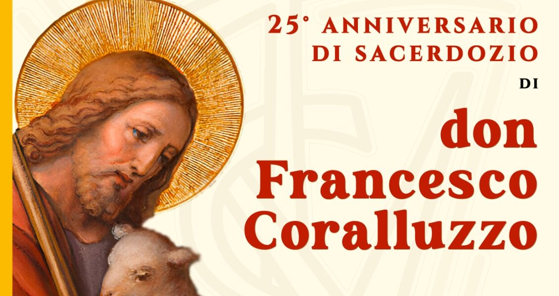Giovedì 1 maggio alle ore 19.00 presso la Parrocchia Volto Santo in Salerno si terrà la Celebrazione Eucaristica la presieduta da S.E. Mons Andrea Bellandi in occasione del 25° anniversario di sacerdozio di don Francesco Coralluzzo.