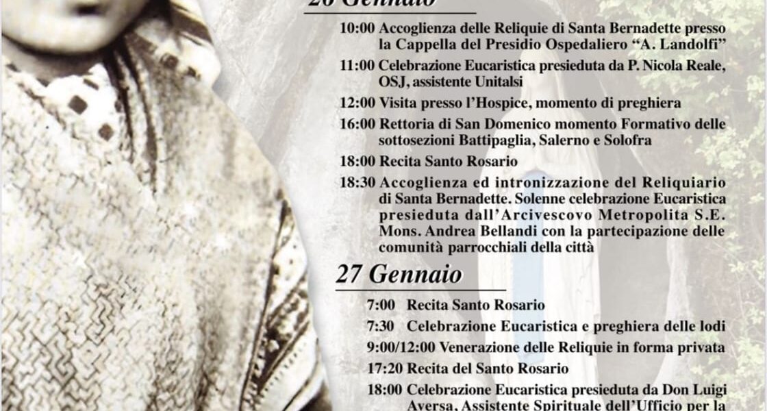 A partire da lunedì 26 e fino a mercoledì 28 gennaio, la comunità di Solofra vivrà un intenso momento di spiritualità e devozione. L’Unitalsi (la Sottosezione di Solofra), in collaborazione con la Rettoria di San Domenico, accoglierà le reliquie di ...