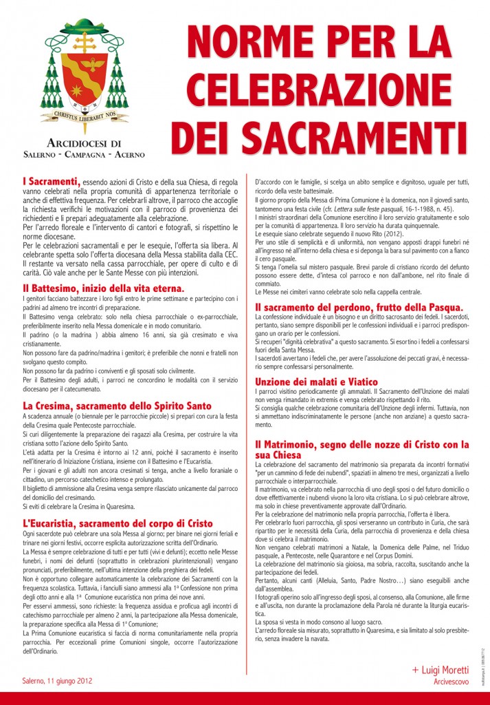 Finalmente anche la nostra arcidiocesi, come già molte diocesi della Campania, ha il suo Direttorio liturgico-pastorale: è un agile volumetto di 80 pagine, che sostituisce le sei paginette del precedente mini-Direttorio di 18 anni fa. Esso è stato promulgato con ...
