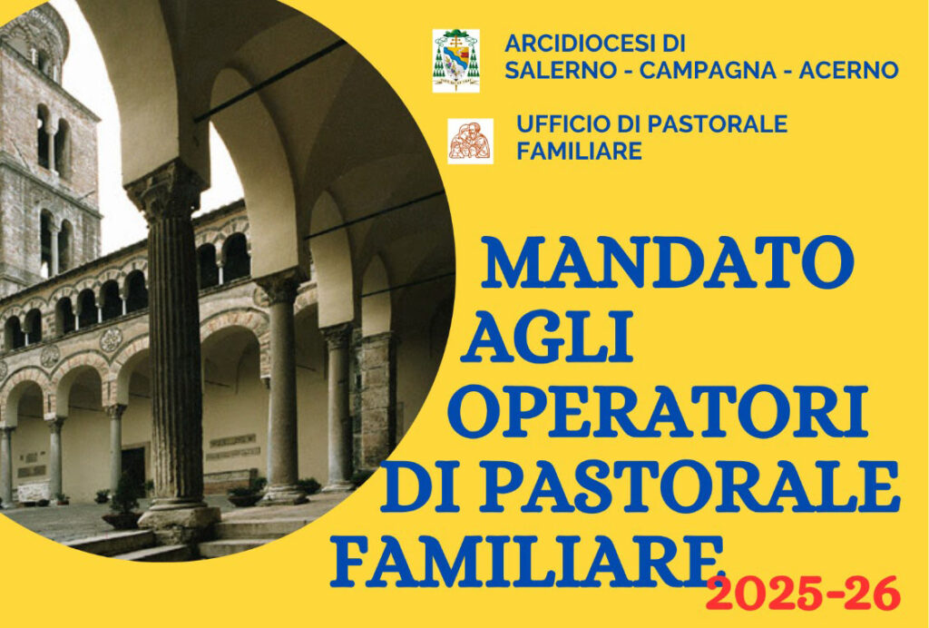 Lunedì 27 ottobre alle ore 20.00, presso la parrocchia Cuore Immacolato di Maria in Salerno si terrà il conferimento del Mandato agli Operatori di Pastorale Familiare organizzato dall’Ufficio per la Pastorale della Famiglia. Durante un momento di preghiera e di ...