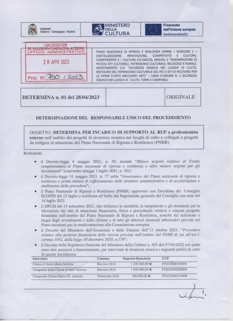Piano Nazionale di Ripresa e Resilienza – Determinazione del responsabile unico del procedimento