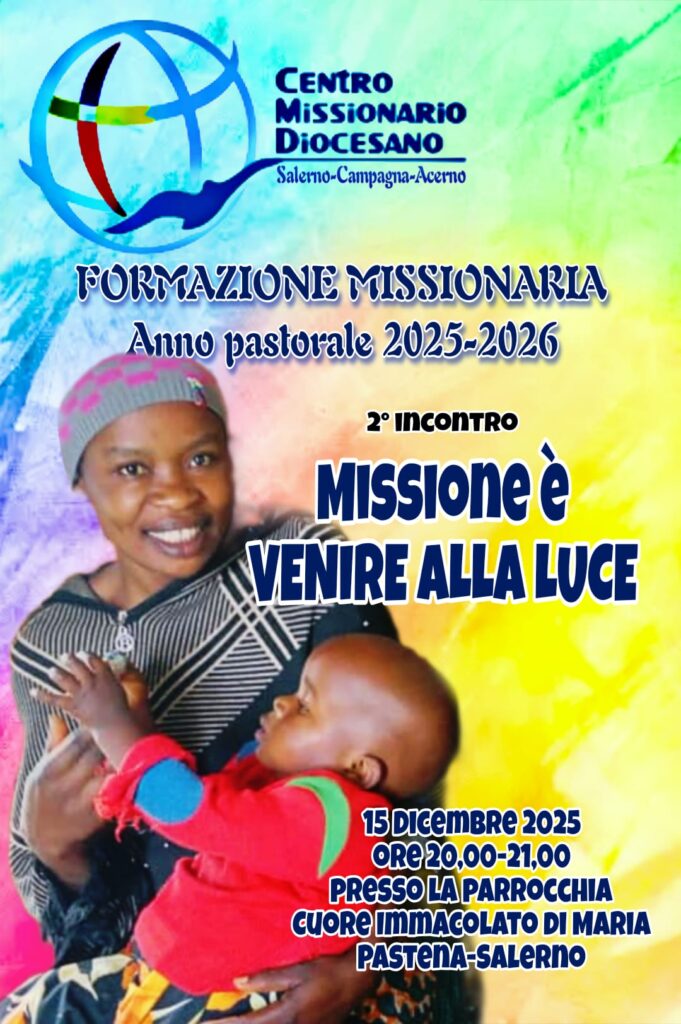 Lunedì 15 dicembre, alle ore 20.00, la Parrocchia Cuore Immacolato di Maria a Pastena, Salerno, ospiterà la seconda tappa del cammino itinerante di formazione missionaria per l’anno pastorale 2025-2026. L’incontro, promosso dal Centro Missionario Diocesano, si intitola “Missione è venire ...