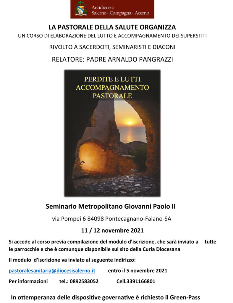 La Pastorale della Sanità della nostra Arcidiocesi propone un corso di formazione sulla “Elaborazione del lutto e accompagnamento dei superstiti” che si terrà presso il Seminario Metropolitano Giovanni Paolo II i giorni 11 e 12 Novembre. L’ esperienza del COVID ...