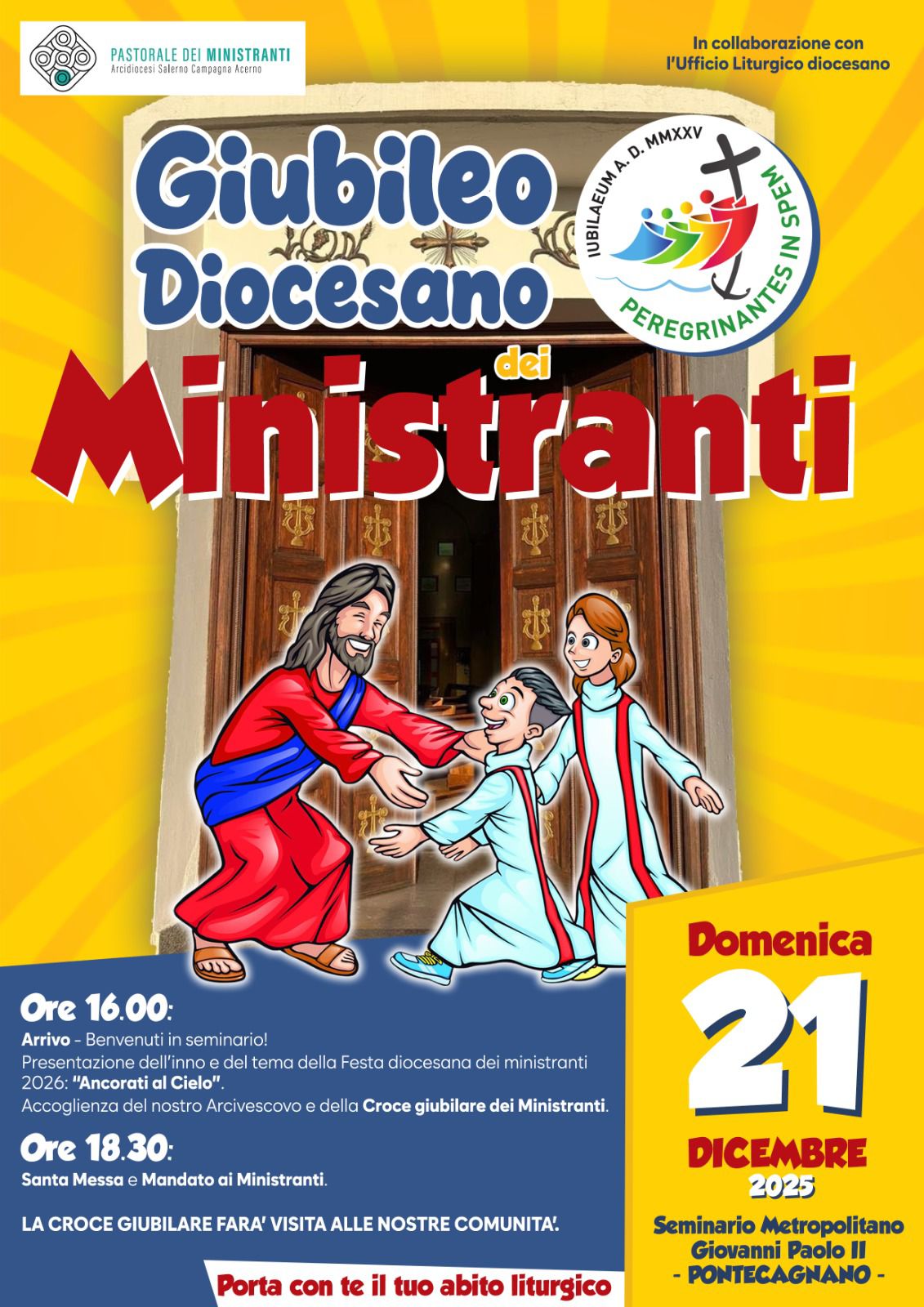 Domenica 21 dicembre, presso il Seminario Metropolitano “Giovanni Paolo II” di Pontecagnano, si terrà il Giubileo Diocesano dei Ministranti organizzata dalla Pastorale dei Ministranti dell’Arcidiocesi di Salerno-Campagna-Acerno, in collaborazione con l’Ufficio Liturgico diocesano.