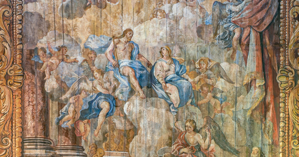 • Montoro (Av) Convento Santa Maria degli Angeli, San Francesco riceve l’indulgenza plenaria alla Porziuncola. Autore ignoto, sec. XVIII, dipinto su tavole del soffitto della chiesa