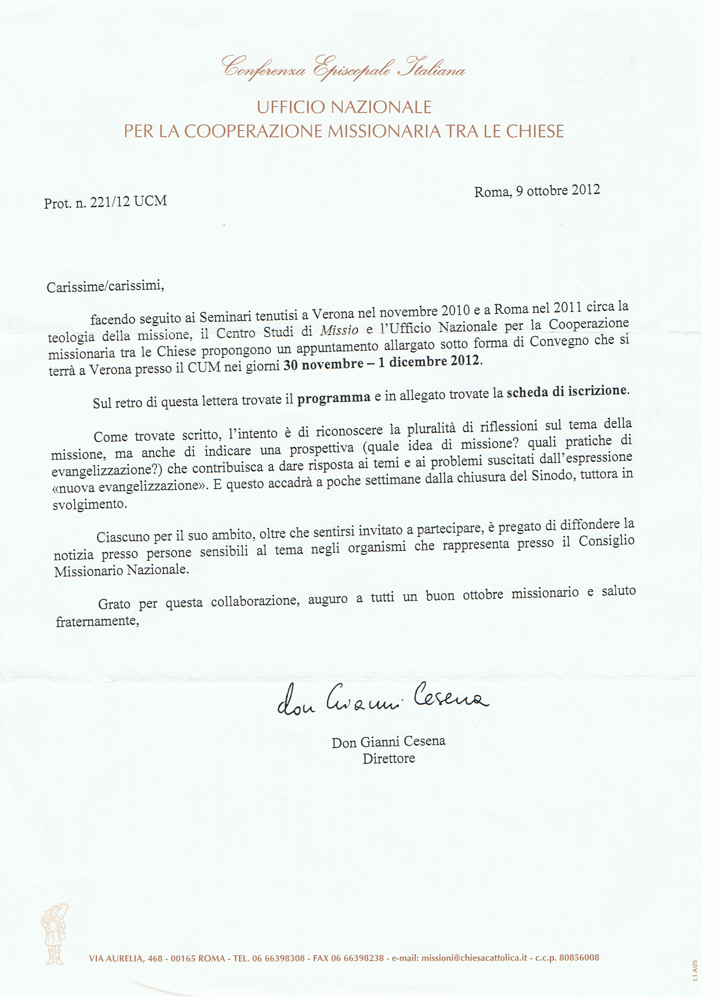 Ottobre – Ufficio per la cooperazione missionaria tra le Chiese, appuntamenti nazionali