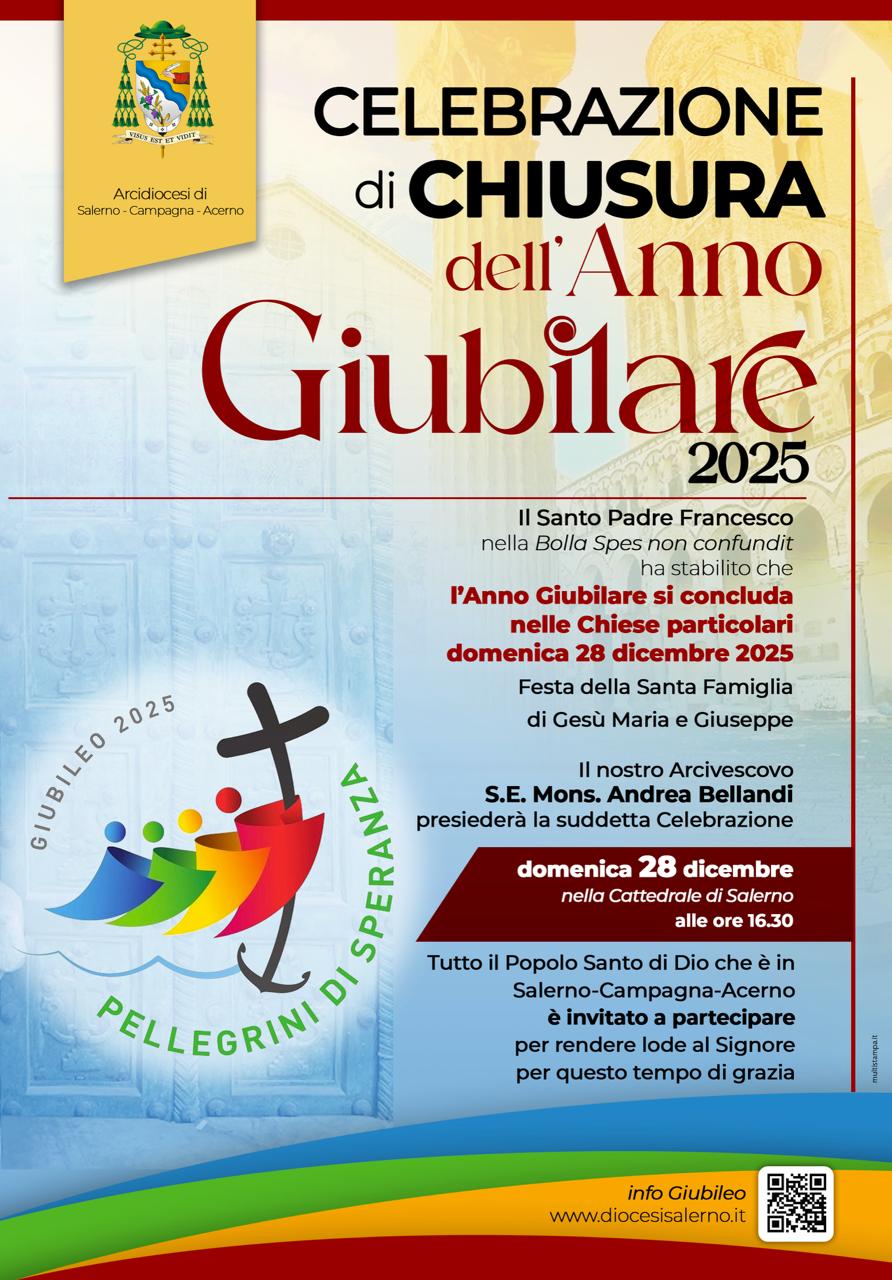 Il Santo Padre Francesco, nella Bolla Spes non Confundit, ha stabilito che l’Anno Giubilare si concluda nelle Chiese Particolari domenica 28 dicembre 2025, Festa della Santa Famiglia di Gesù, Maria e Giuseppe.