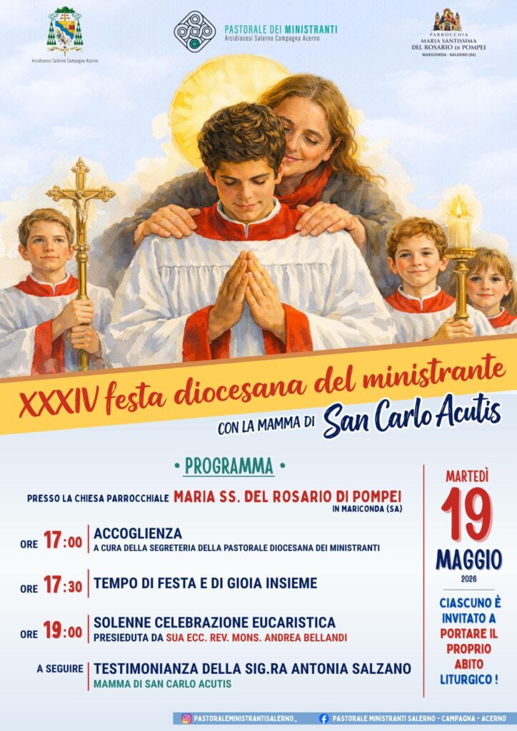 Martedì 19 maggio presso la Parrocchia Maria SS. del Rosario di Pompei in Mariconda di Salerno si terrà la XXXIV Festa diocesana del ministrante.