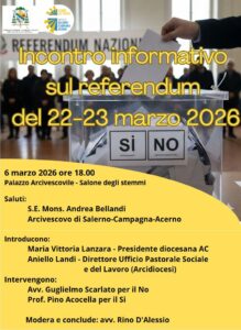 Venerdì 6 marzo, alle ore 18.00, presso il Palazzo Arcivescovile, Salone degli Stemmi, si terrà un Incontro informativo sul Referendum del 22 e 23 marzo.