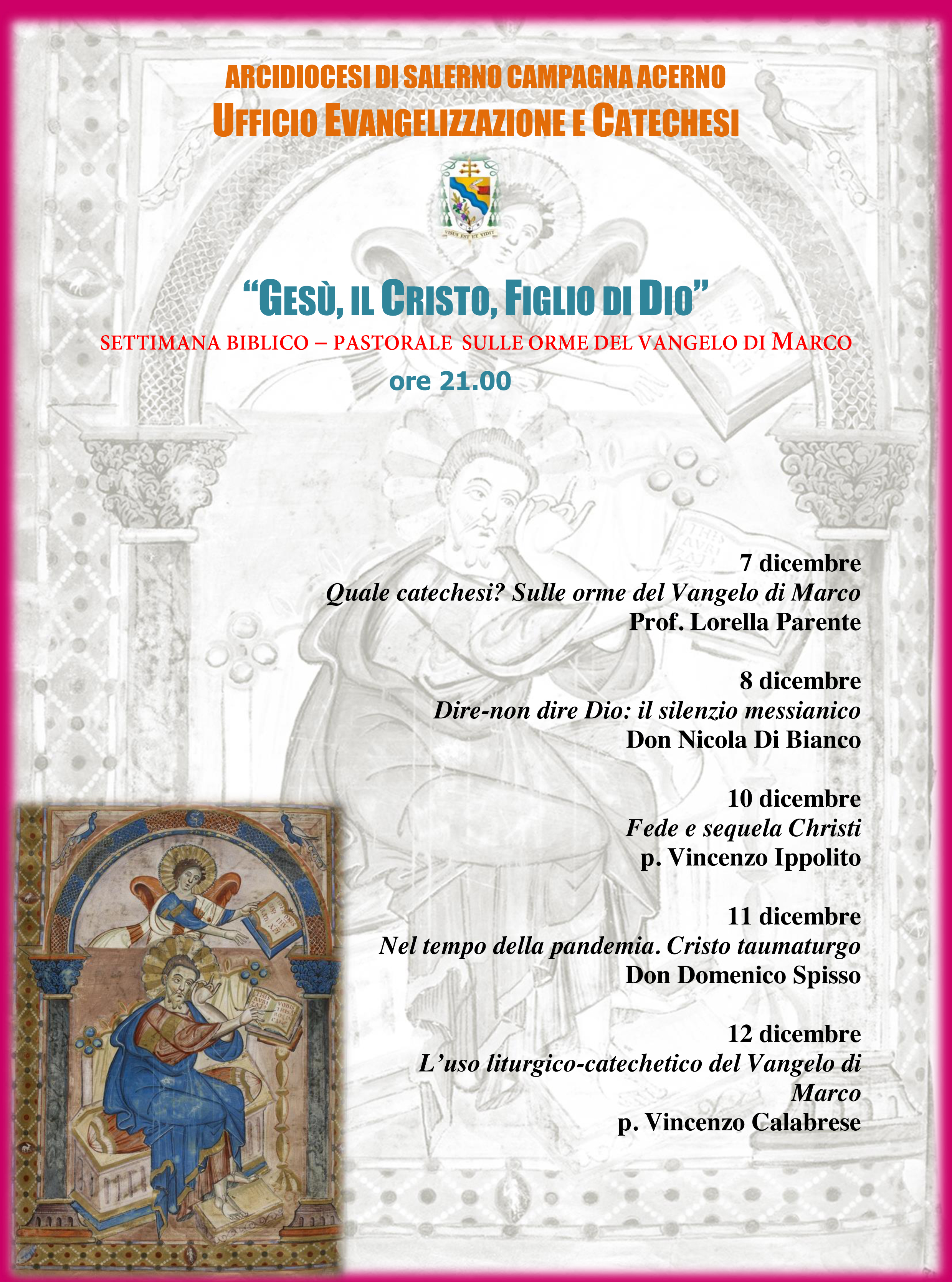 7 dicembre: Quale catechesi? Sulle orme del Vangelo di Marco – Prof. Lorella Parente;