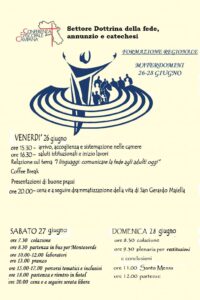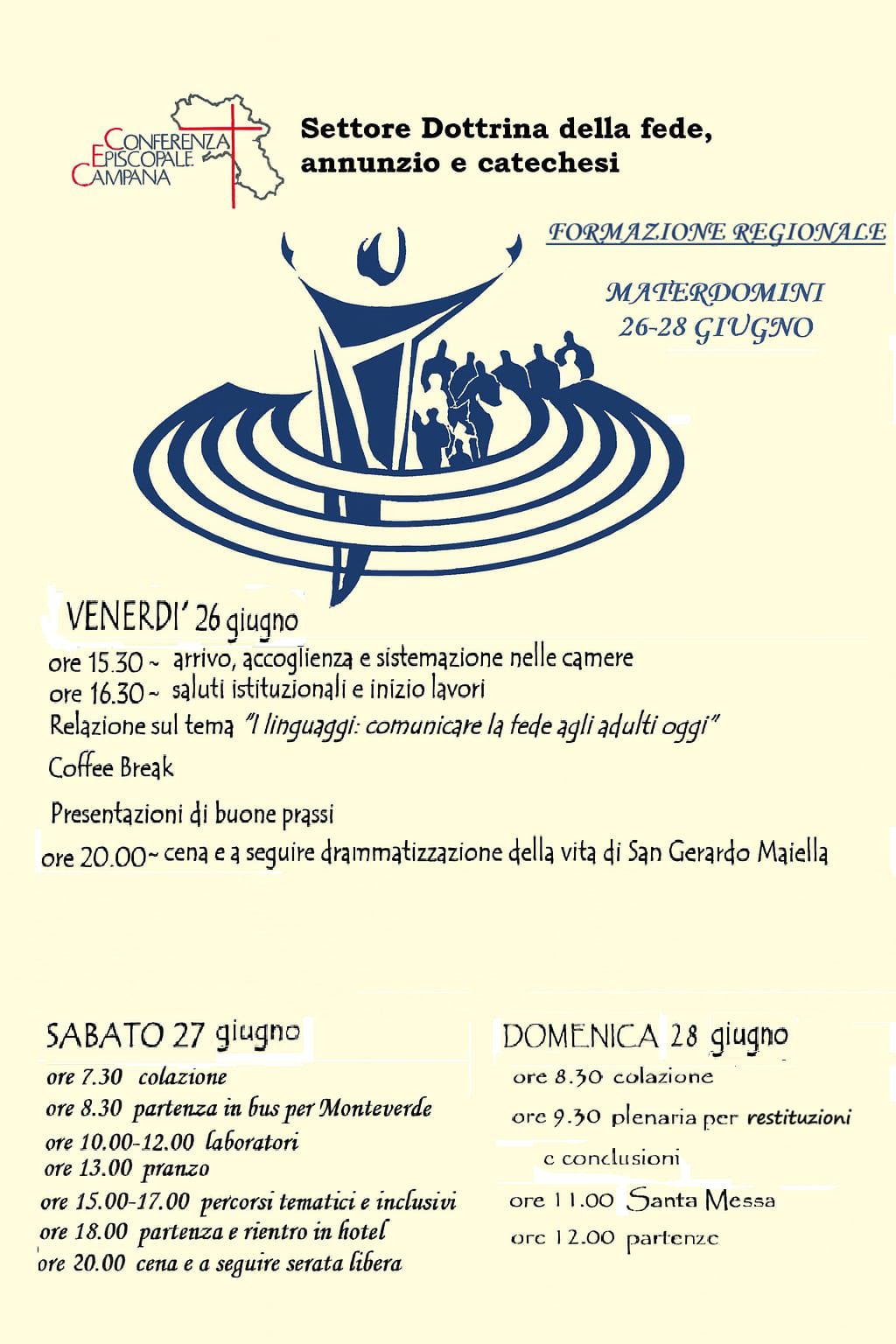 Il Settore Dottrina della Fede, Annunzio e Catechesi della Conferenza Episcopale Campana propone un appuntamento di Formazione Regionale, che si terrà a Materdomini dal 26 al 28 giugno.